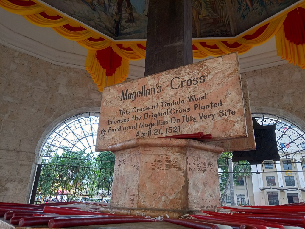 A very popular landmark in Cebu is Magellan’s Cross, located in the town plaza, next to the munisipyo. The cross itself is encased in tingalo wood to protect it from the elements, as well as from people who chip away parts of the cross because they claim that it has miraculous healing powers. Ferdinand Magellan ordered his Portuguese crewmen to plant the cross upon arriving in Cebu. Some people believe that the cross encased in the tingalo wood is but a replica planted by Spaniards after successfully christianizing the Philippines, as the original cross is said to have been destroyed.