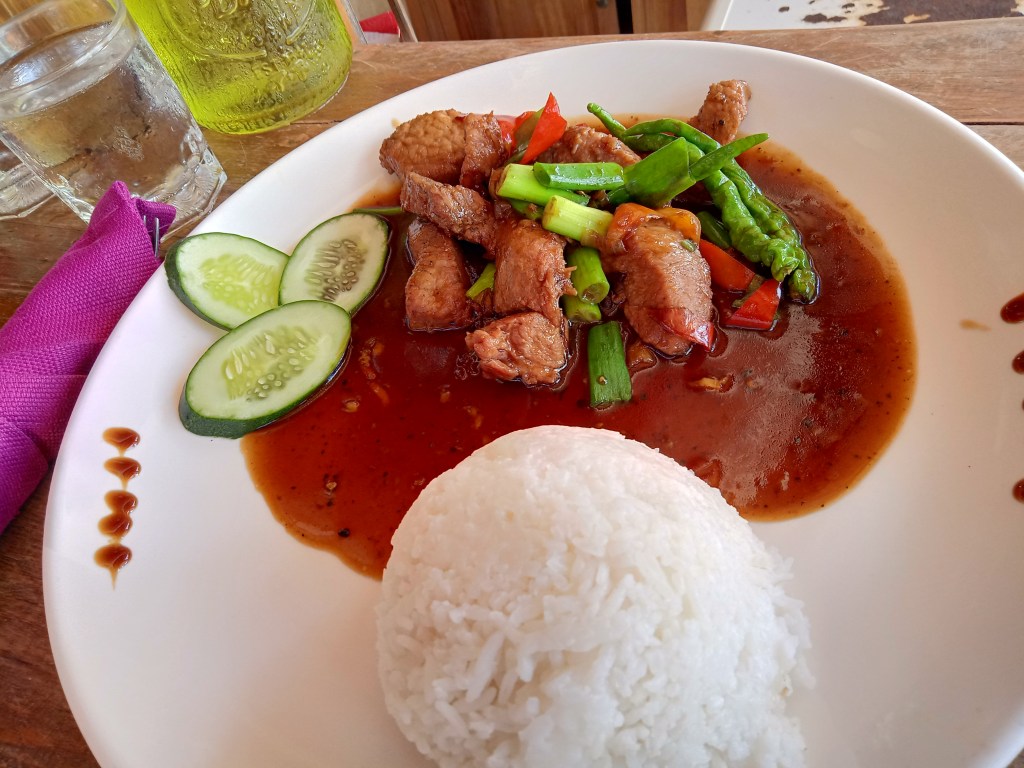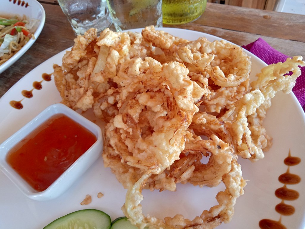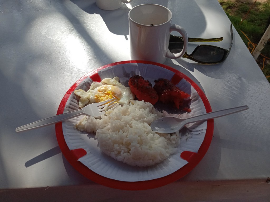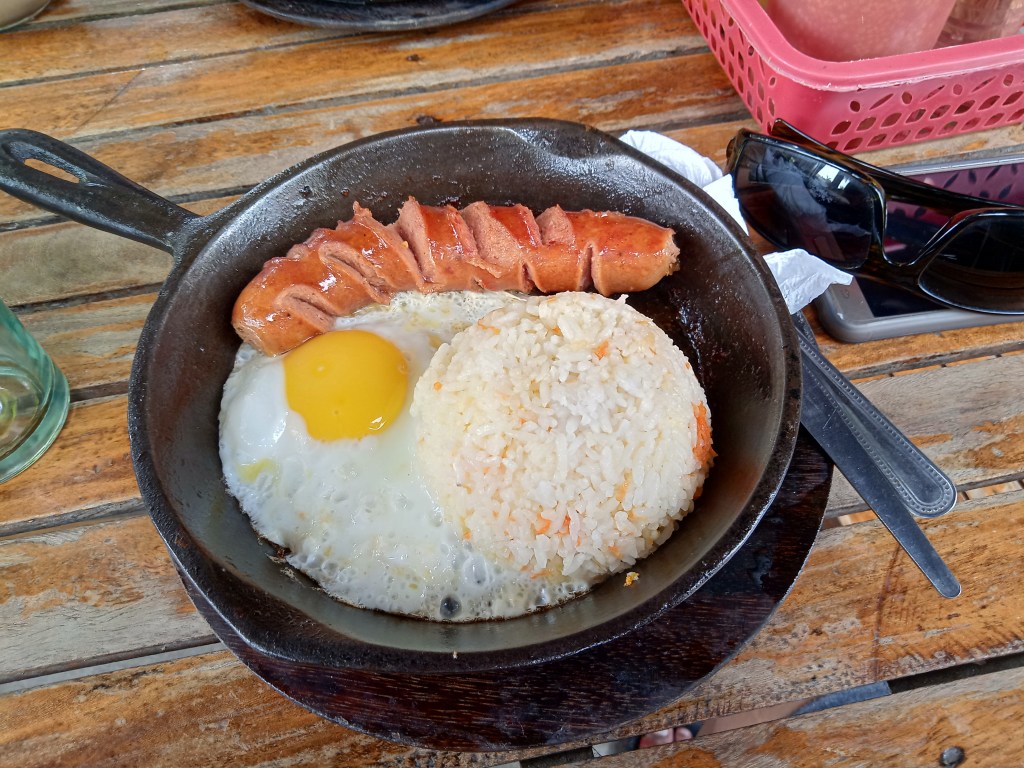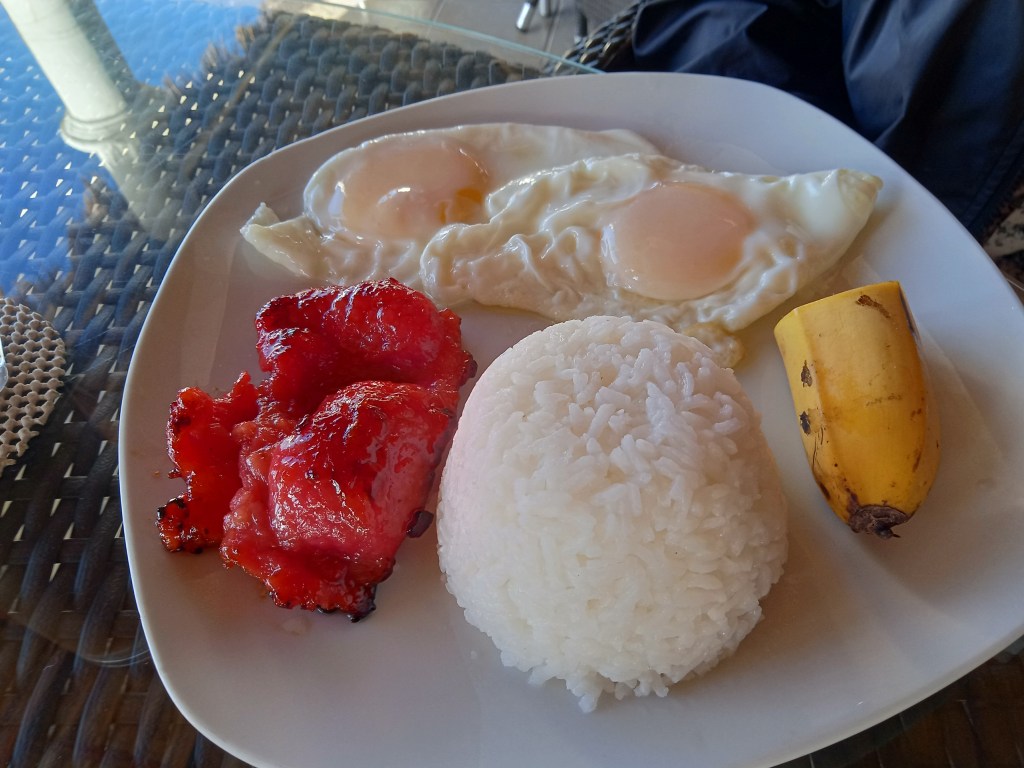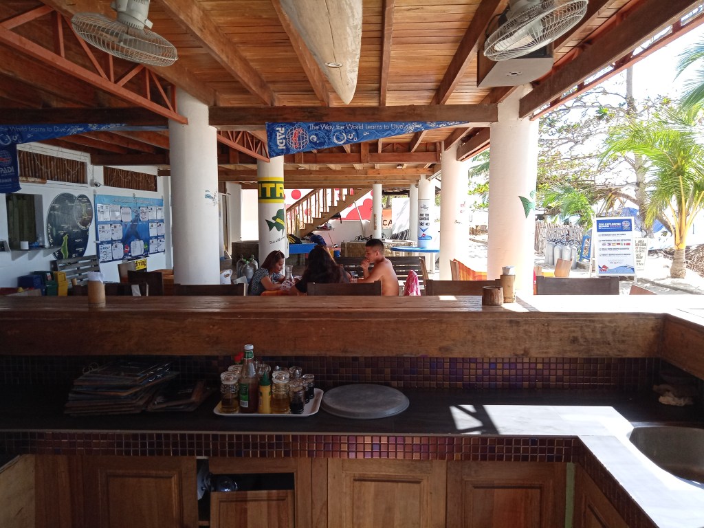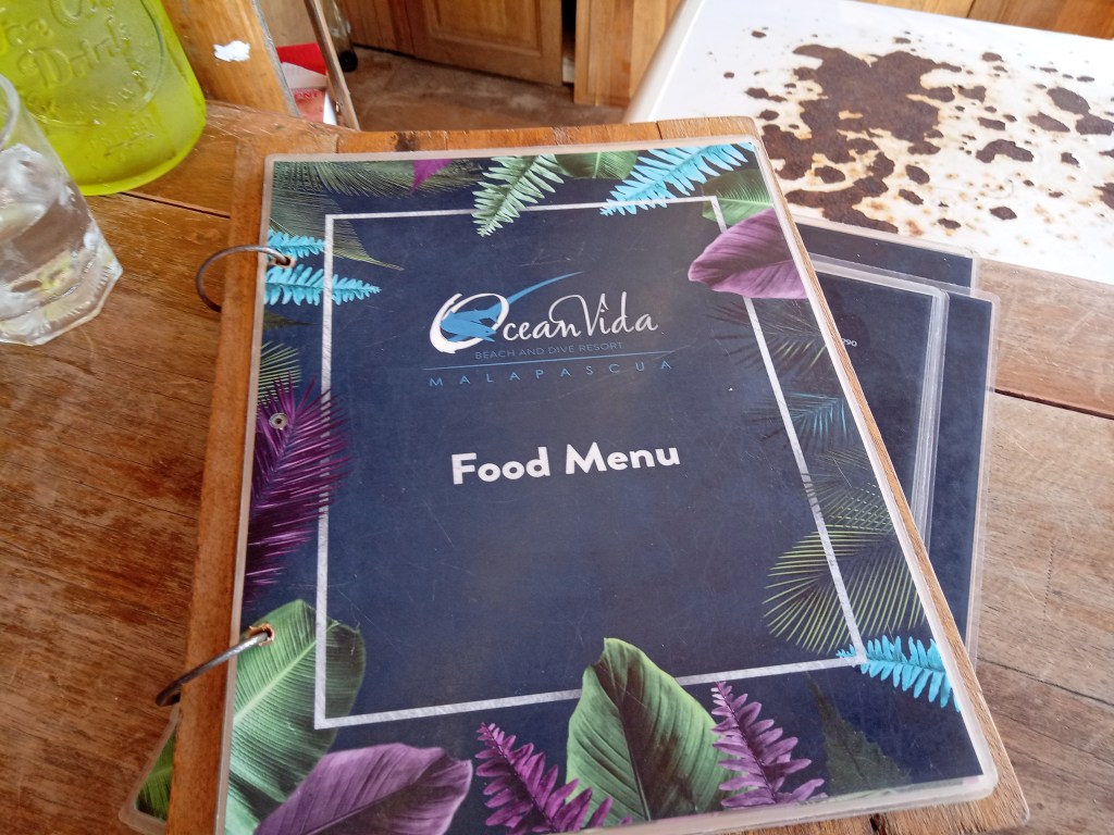 We bought a few souvenirs (a T-shirt and local bracelet for me, sarong for my daughter), and had an early lunch (pansit/adobo/onion rings) at Ocean Vida Dive Resort (not great but not bad either).