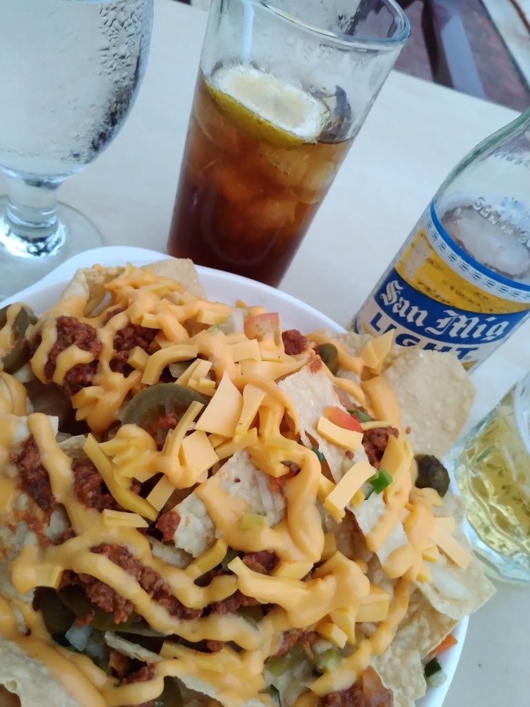 Still full from the heavy breakfast @Bag of Beans, and lunch at the resort’s resto, we decided just to have their Nachos, San Miguel Lite Beer (only for me), and just watch as the sun went down beneath overcast skies.