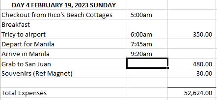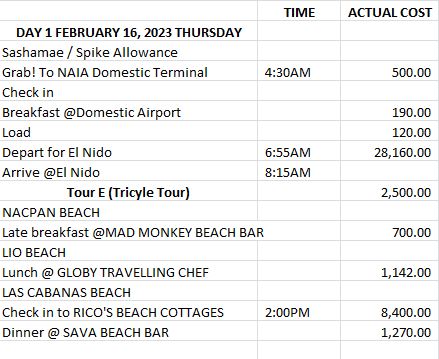 Below is a summary of expenses incurred for a 4days 3nights trip for two(2) to El Nido.