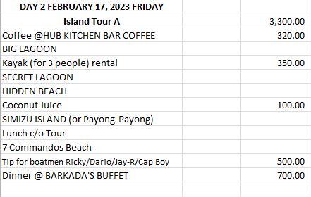 DAY 2 FEBRUARY 17, 2023 FRIDAY ISLAND-HOPPING