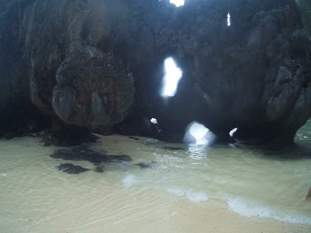 Then you’d have to swim near rocky outcrops to get to shallow waters, all the while the sea waves are crashing down onto the cliff-side.